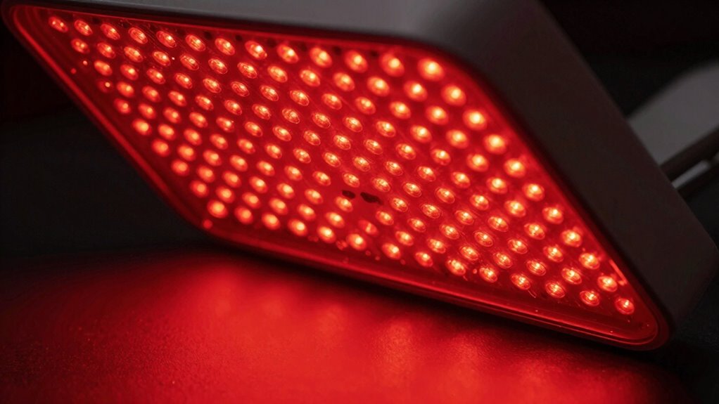 Wavelength refers to the distance between successive peaks of light waves, and in red light therapy, it plays a crucial role in determining how the light interacts with your body. The wavelength affects how well your tissues absorb the light, influencing the overall tissue response. Shorter wavelengths tend to be absorbed more superficially, targeting surface-level skin cells. Longer wavelengths penetrate deeper, reaching muscles, cartilage, and bones. This variation in light absorption means different wavelengths can be used for specific therapeutic goals. Understanding tissue penetration helps you choose the right red light therapy device for your needs. When the light reaches your tissues effectively, it stimulates cellular activity, promoting healing and reducing inflammation. Wavelengths influence tissue penetration, which is a key factor in maximizing the benefits of red light therapy. Additionally, selecting the appropriate wavelength can optimize tissue response for various health conditions. Moreover, the choice of wavelength can determine the efficacy of treatment by targeting specific depths within the body. Recognizing the importance of wavelength accuracy can further enhance treatment outcomes and ensure safety.