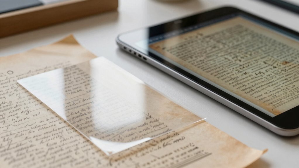 To maximize the benefits of both methods, start by evaluating which documents require physical protection and which are better suited for digital access. Use preservation techniques aligned with archival standards to guarantee long-term stability. For physical documents, laminating can provide durability, but only when preservation techniques avoid damaging the material over time. Digitizing sensitive or frequently accessed items helps prevent wear and meets archival standards for digital preservation. When combining these methods, create a clear system: lamination for display or protection, and digitization for storage and sharing. Regularly review your collection to identify which documents benefit most from each approach. Understanding battery inverter generator capacity can help determine the most suitable power sources for your digital and physical preservation needs. Additionally, considering material composition can influence the choice between lamination and digitization. Incorporating proper storage conditions can further enhance the longevity of your preserved documents. Implementing proper handling techniques ensures the integrity of fragile materials during both lamination and digitization processes. Recognizing the importance of environmental controls can significantly reduce deterioration risks and extend the lifespan of your collection. This strategic balance ensures you maintain document integrity, enhance accessibility, and adhere to preservation best practices.