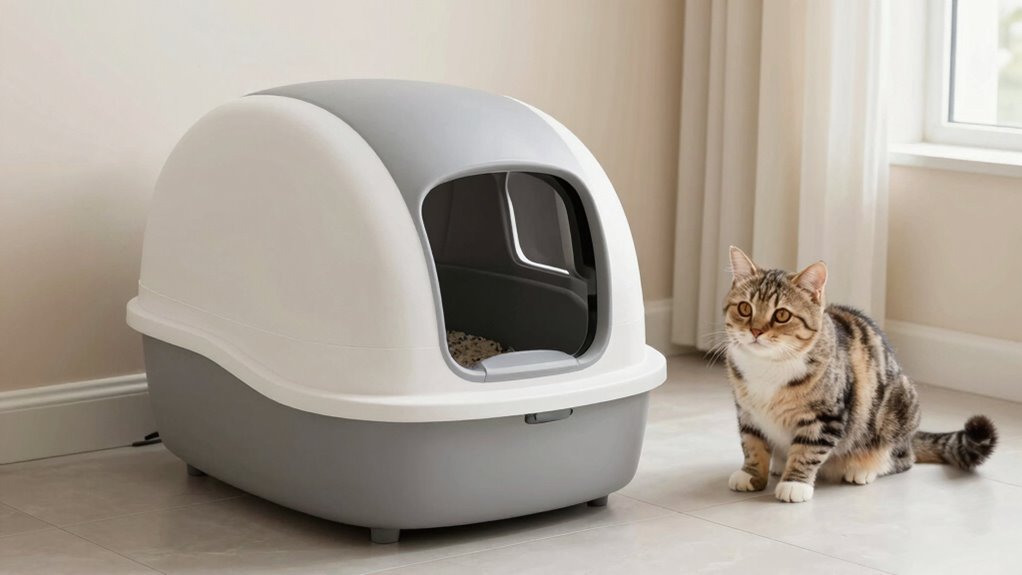 A clean, odor-free home benefits both you and your cat, making daily life more pleasant. With your new automatic litter box, maintaining litter box hygiene becomes easier, reducing odors and messes. This encourages your cat to use the box consistently and prevents accidents elsewhere. By observing your cat’s behavior cues, you’ll notice when they’re comfortable with the new setup, which minimizes stress. A tidy litter box also promotes healthier habits and reduces the risk of infections. As your cat associates the automatic litter box with cleanliness and ease, they’ll be more likely to use it regularly. Overall, this solution creates a happier environment for both of you—less cleaning for you and a more content, healthy cat.