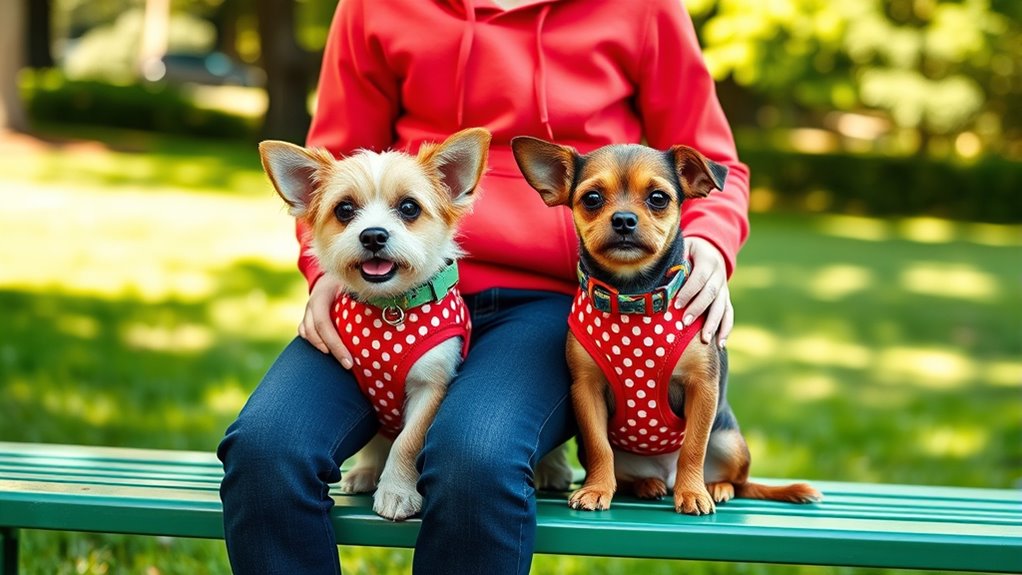 Ever wondered if matching outfits can ease your pet’s social anxiety? Dress coordination can foster a sense of security and strengthen your social bonding, making your pet feel more comfortable in new environments. When you coordinate outfits, your pet may recognize your cues and feel less stressed around others. So yes, matching outfits aren’t just fun—they can actively help reduce pet anxiety during social outings, creating a calmer, more confident companion.