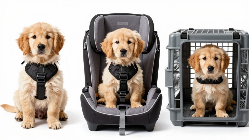 In real-world accidents, your pet’s safety hinges on effective restraint placement, like anchoring a lifeline during rescue techniques. Harnesses keep pets close, minimizing injury risk, while car seats cradle them securely, reducing movement and impact. Crates act as barriers, offering containment. Each option’s performance varies, but proper restraint use is essential. Always choose the best fit, ensuring your pet remains protected, whether in sudden stops or collisions.
