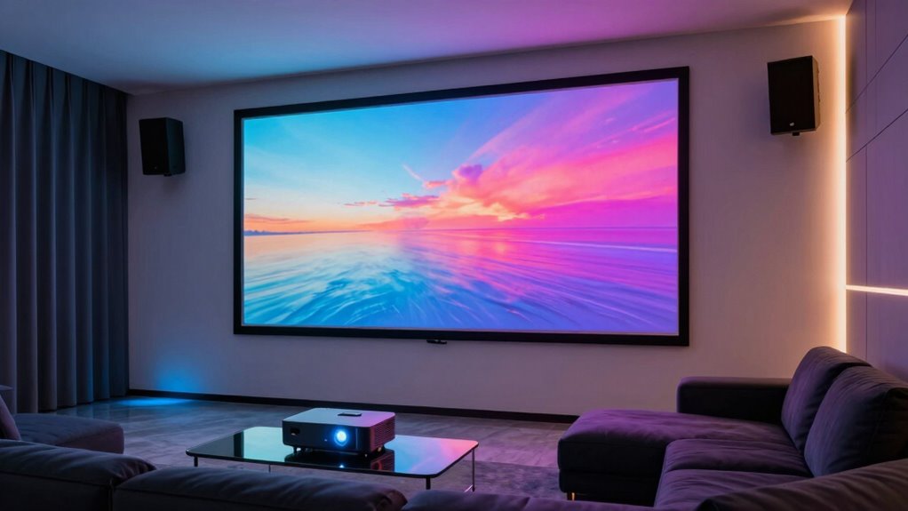 If you’re looking for the 15 best 4K projectors for 2026 that deliver stunning visuals, I’ve got you covered. These projectors combine ultra-clear 4K resolution, HDR support, and bright images perfect for indoor and outdoor use. They feature smart OS like Google TV, Dolby sound, and portability for versatile setups. I’ll share details on each model’s specs, features, and what makes them stand out. Keep going to discover the top options that will elevate your viewing experience.
