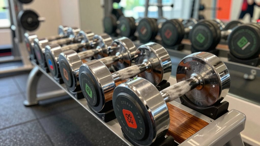 I believe high-quality steel and cast iron are your best bets for durability during frequent weight increases. These materials withstand repeated use without cracking or bending, even under heavy loads. I personally look for dumbbells with solid metal components and secure locking mechanisms, as they keep the weights firmly in place. Choosing sturdy materials ensures your adjustable dumbbells last longer and stay safe as you progress in your lifting journey.