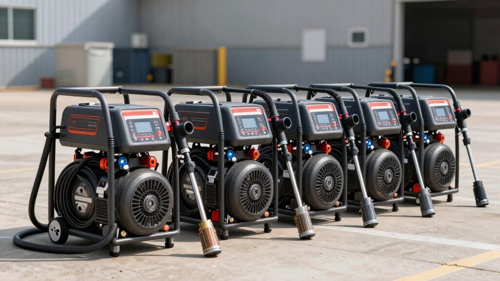 If you’re tackling tough cleaning jobs, a heavy-duty electric pressure washer is a game-changer—did you know the global pressure washer market is projected to reach $2.2 billion by 2026? With options like the 5000 PSI models and versatile features like touch screens and dual soap tanks, there’s something for everyone. Choose wisely based on your needs, and you’ll enjoy spotless results in no time. Happy cleaning!