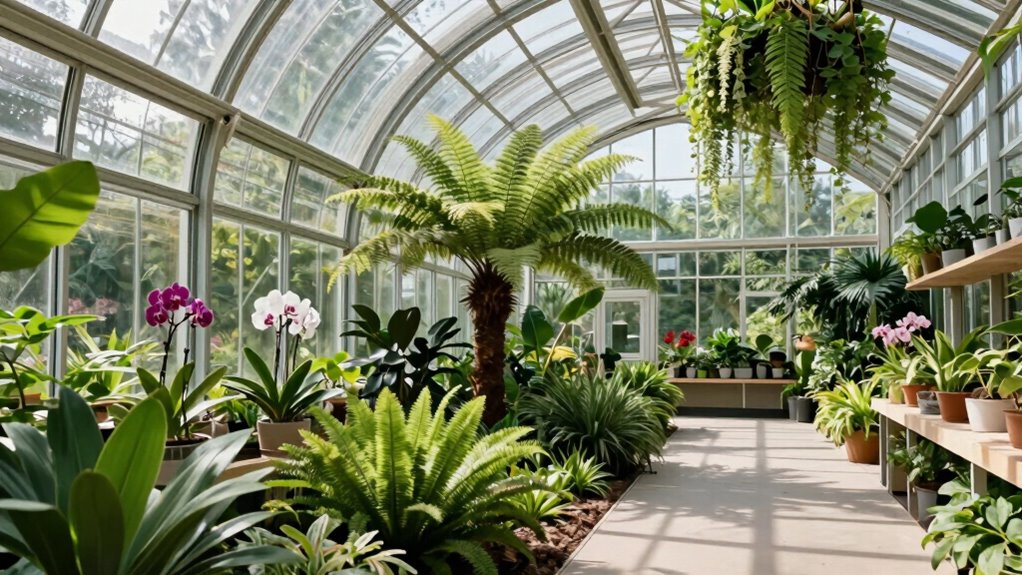 Think of eco-friendly greenhouse options as seeds of change. Yes, there are sustainable choices like recycled materials, bamboo frames, and solar-powered systems that minimize environmental impact. I’ve found that using insulated panels and rainwater harvesting further boosts efficiency. These options symbolize our commitment to harmony with nature, allowing us to nurture growth while respecting the planet. Embracing eco-friendly designs helps us cultivate a greener future together.