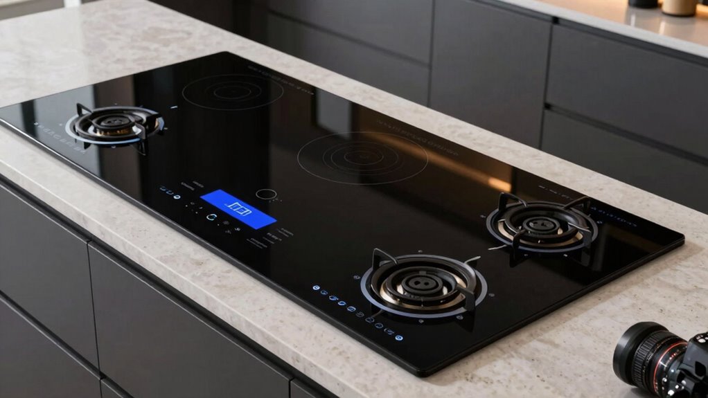Five-burner induction cooktops are markedly more energy-efficient than gas models. I’ve found they convert about 90% of electricity into heat, while gas only about 40-55%. This means I use less energy and save money over time. Plus, induction heats up faster and offers precise control, making cooking more efficient and eco-friendly. If you’re looking to cut energy costs, induction is definitely the way to go.
