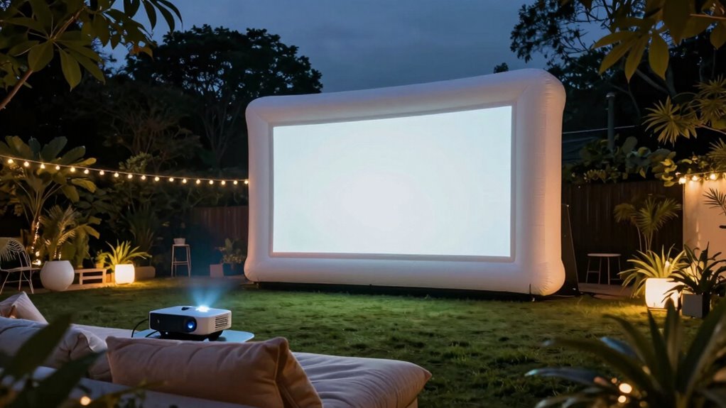 Choosing the perfect inflatable movie screen for your backyard can feel overwhelming, but remember, the right one can turn your space into an epic outdoor cinema—like having your own Hollywood premiere under the stars! Whether you opt for a cozy 14-foot or a massive 25-foot screen, each option promises unforgettable movie nights. So go ahead, pick the best fit, and prepare for memories that’ll outshine even the brightest summer nights!