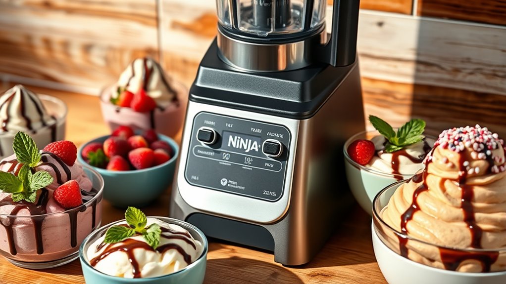 Choosing the right Ninja Creami Deluxe recipes hinges on ingredient versatility, which plays a vital role in how many flavors and textures you can create with common pantry staples. Versatile ingredients like frozen fruits, milk, and sweeteners allow for a wide range of treats, from creamy ice creams to sorbets and gelatos. Recipes that incorporate a variety of ingredients—such as nuts, dairy alternatives, or flavorings—offer flexibility for dietary needs and personal preferences. Being able to adapt recipes with different mix-ins and flavorings expands your creative options and helps you craft personalized desserts. Using ingredients that work across multiple recipes maximizes your supplies and guarantees consistent, delicious results, making ingredient versatility a key factor in selecting the best Ninja Creami recipes.