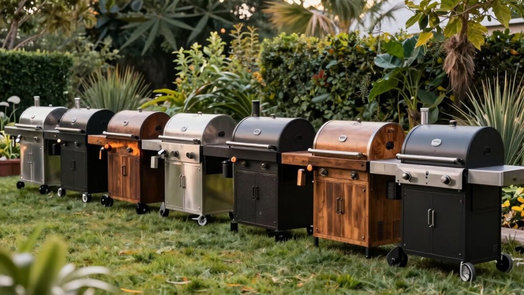 When choosing an outdoor smoker, portability and storage options can make a big difference in how convenient it is to use and maintain. Portable smokers typically weigh between 18 to 60 pounds, so consider how easy it is to move or set up. Compact models with foldable or detachable parts are great for saving space or taking on the go. Vertical smokers with handles and wheels boost mobility, making outdoor use and storage simpler. Look for stackable or modular designs that can be disassembled for compact storage when not in use. Durable materials like stainless steel or heavy-duty alloys not only ensure longevity but also make storage in various outdoor environments easier. Prioritizing these factors helps you enjoy your smoker without hassle.