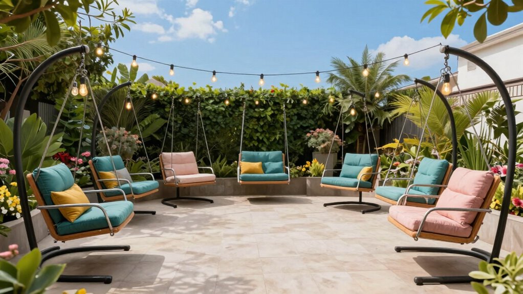 Did you know that outdoor furniture sales increase by 35% during spring? Choosing the right swing chair can truly transform your patio into a relaxing retreat. With options like heavy-duty frames and portable designs, there’s something for everyone. Remember to think about durability, comfort, and size to make the best choice. Investing in a quality swing chair means more peaceful moments outdoors—trust me, it’s worth it!