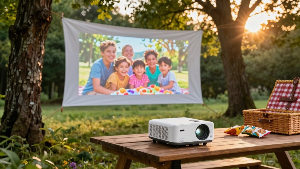 Portable projectors can be suitable for outdoor daytime use, but it depends on the model’s brightness. I’ve found that those with at least 2,000 lumens perform better in daylight conditions, providing clear images even in bright environments. Keep in mind, though, that ambient light can still wash out projections. To get the best results, I recommend setting up in shaded areas or during early mornings or evenings for ideal viewing.