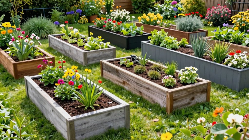 If you’re looking for the best raised garden beds for 2026, I’ve found options that combine durability, smart design, and easy setup to help you grow more successfully. From modular steel beds with wheels and shelves to rust-resistant galvanized models, these choices cater to various space sizes and plant types. Choosing the right one depends on factors like material safety, drainage, and aesthetics. Keep going to discover the top picks that’ll elevate your gardening game.