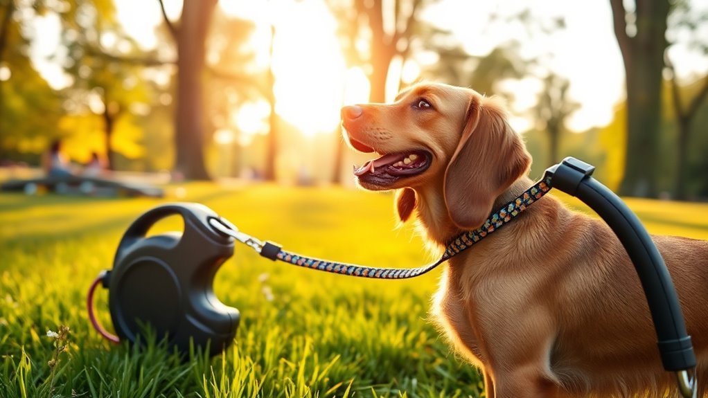 If you’re looking for the best retractable leashes that keep your dog safe and stylish, I recommend options with reliable locking systems, durable materials, and safety features like reflective strips. From lightweight models for small dogs to heavy-duty options for larger breeds, there’s a leash to suit every need. Features like tangle-free movement, ergonomic handles, and night visibility add extra convenience. Keep exploring to find the perfect leash that balances control, comfort, and style for your pup.