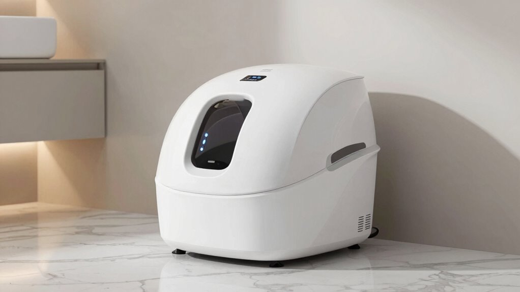 When the power’s out, these robot litter boxes can still keep odor leaks at bay, but they’re not foolproof. Most have backup batteries or manual modes, which help contain smells temporarily. Still, I’d say they’re only as good as their backup power. Don’t rely on them entirely—think of it as a safety net. Regular cleaning and maintenance are your best bet to keep odors in check during outages.
