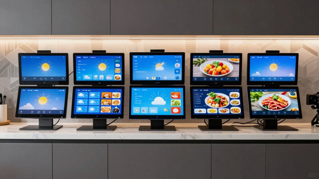 Smart displays boost kitchen safety and security by providing real-time alerts, such as smoke or carbon monoxide detection notifications. I love how I can monitor security cameras directly from my display, so I always know what’s happening. They also help prevent accidents by displaying recipes carefully, reminding me of safety tips, and even offering voice commands to control smart appliances, making my kitchen both safer and smarter.