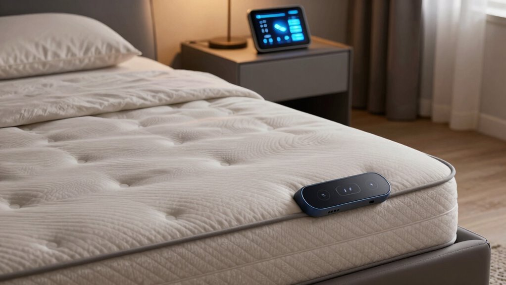 In 2026, the best smart sleep trackers for mattresses combine contactless monitoring with user-friendly features like detailed sleep analysis, heart rate tracking, and breathing pattern detection. Devices like the Withings Sleep Tracking Pad and Sleeptracker Monitor offer accurate insights, alarms, and health data integration. They’re easy to set up, portable, and prioritize safety with alerts for irregularities. Stay with me, and I’ll share more about how these advanced options can help improve your sleep health.