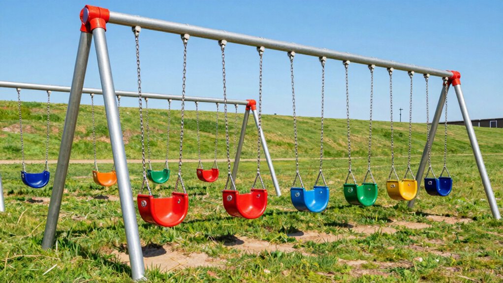 Ever wondered how to make sure a swing set can handle everyone in your family? The key is understanding weight capacity limits. Most heavy-duty swing sets support at least 200 pounds per seat, with total capacities often exceeding 600 pounds. Always check the manufacturer’s specifications to guarantee the set can safely hold all intended users at once. Swing sets built for heavier loads typically feature thicker metal frames, like 60mm or 70mm steel pipes, for added support. The weight capacity directly impacts the set’s safety and longevity, preventing structural failure under heavy use. For families with multiple children or adults, choosing a swing set with a higher weight limit offers versatility and peace of mind during outdoor play.