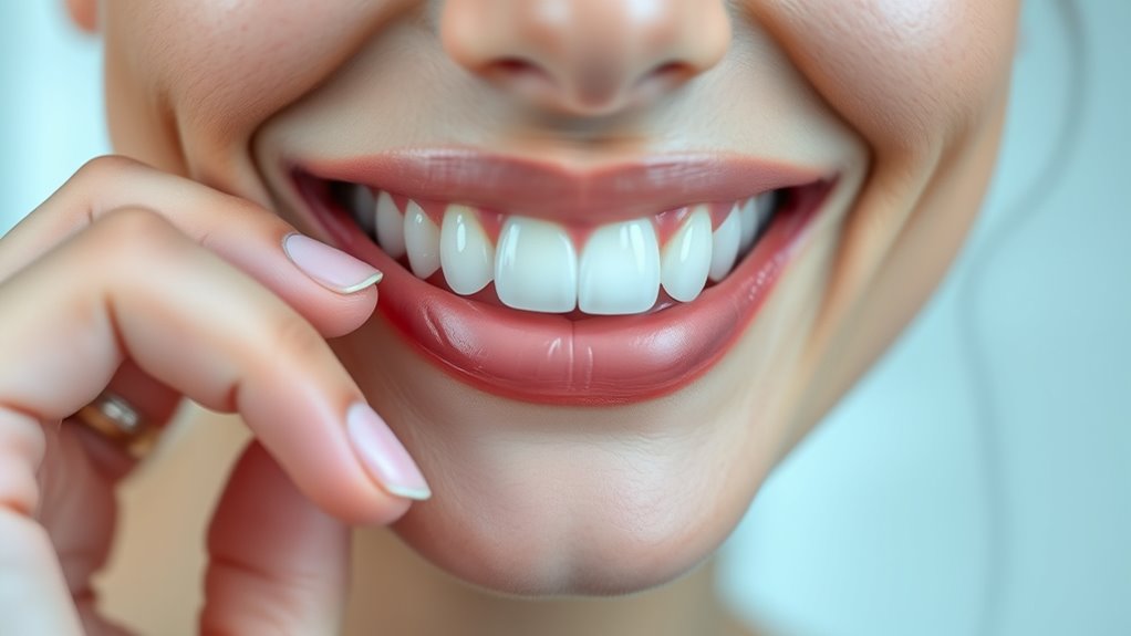 Sensitive teeth should be treated with tender techniques to prevent pain and protect enamel. I recommend applying whitening strips gently, avoiding excessive pressure, and following the instructions carefully. Using a smaller amount of gel or applying the strips for slightly shorter times can help. Remember, patience is key—taking cautious, considerate steps guarantees a comfortable, effective whitening experience without worsening sensitivity or damaging your teeth.