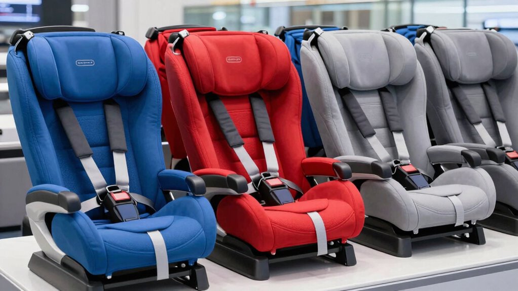 Ensuring your travel car seat meets all relevant safety standards is vital for your child’s protection during both car rides and flights. I always check that the seat complies with standards like FMVSS 213 in the U.S. or ECE R44/04 in Europe, which confirm the seat’s safety in vehicles. It’s also essential to verify that the seat is FAA-approved for airline travel, usually indicated by an approval sticker or label. I confirm that the seat has been tested and certified for both vehicle and aircraft safety requirements, giving me confidence in its protection. Additionally, I look for seats that have undergone crash testing and meet regional safety regulations for child restraint devices, ensuring maximum safety wherever I’m traveling.