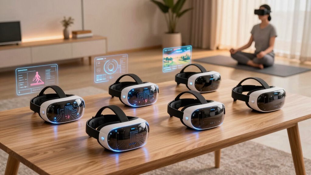 If you’re serious about blending fitness and meditation with VR, choosing the right headset makes all the difference. Imagine someone like Sarah, who used the Meta Quest 3 to seamlessly switch between guided meditation and high-energy workouts—transforming her wellness routine. Whether you opt for the Meta Quest 3 or a lightweight Bluetooth-enabled headset, prioritize comfort, features, and your fitness goals. With the right gear, you’ll open a whole new level of mindfulness and movement.